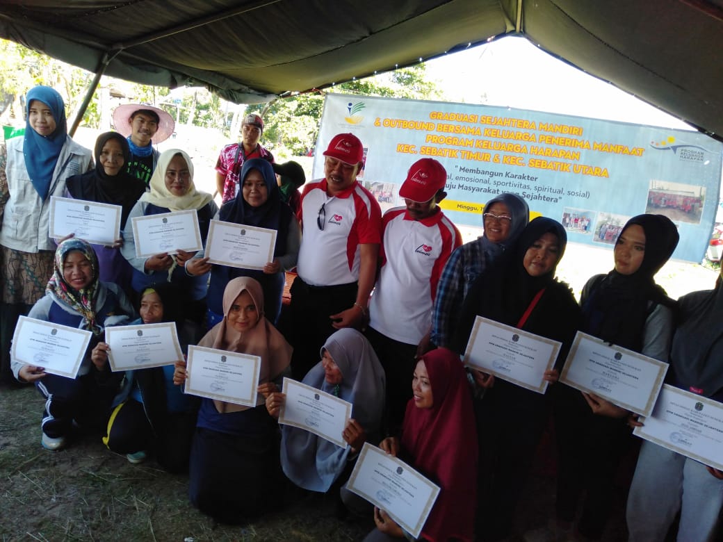 Kegiatan tersebut dirangkaikan dengan serah terima piagam penghargaan dari Dinas Sosial Kabupaten Nunukan, kepada 14 KPM PKH Kecamatan Sebatik Timur. Keluar secara suka rela dari kepesertaan penerima bantuan sosial PKH atau dengan istilah Graduasi Sejahtera Mandiri.