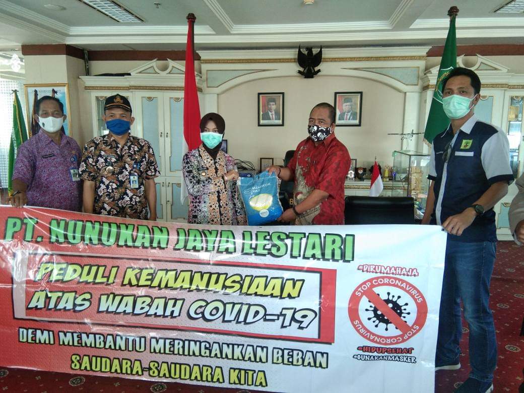 PT. Nunukan Jaya Lestari (PT. NJL), sebuah perusahaan perkebunan Kelapa sawit yang beroperasi di Seimanggaris menyerahkan bantuan sosial berupa beras kepada Pemerintah Daerah Kabupaten Nunukan yang diterima langsung oleh Bupati Nunukan Hj. Asmin Laura Hafid di ruang kerjanya Kantor Bupati Nunukan, Jumat (01/05/2020).