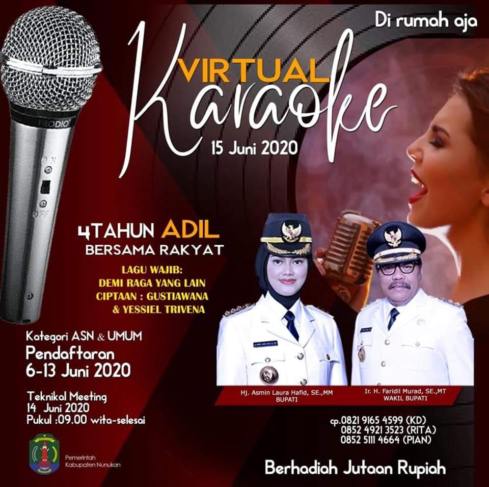 Sebagai ungkapan rasa syukur atas telah berjalannya 4 (empat) tahun Pemerintahan Asmin Laura Hafid – Faridil Murad akan digelar Lomba Karaoke Virtual. Lomba Karaoke ini rencananya akan dibuka oleh Bupati Nunukan Hj. Asmin Laura Hafid pada Senin (15/06/2020).
