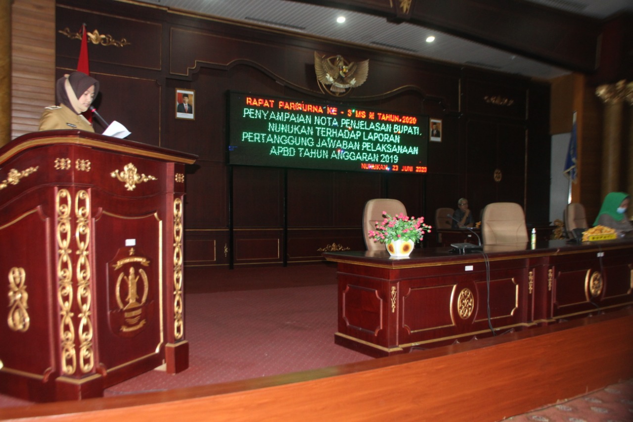 Dewan Perwakilan Rakyat Daerah (DPRD) Kabupaten Nunukan, melaksanakan rapat paripurna masa sidang ke III tahun 2020. Tentang penyampaikan nota penjelasan Bupati Nunukan terhadap laporan pertanggungjawaban pelaksanaan APBD tahun anggaran 2019, di ruang rapat paripurna DPRD Nunukan, Selasa (23/6/2020).