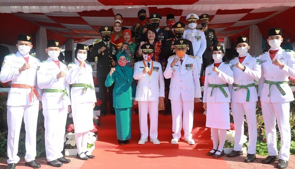 “Momen Hari Kemerdekaan tahun ini memang berbeda. Karena kita masih dalam suasana pandemi Covid-19, sehingga perayaan dilaksanakan dengan sederhana, sesuai penerapan adaptasi kebiasaan baru,” ujar Irianto yang dijumpai usai bertindak sebagai inspektur upacara.