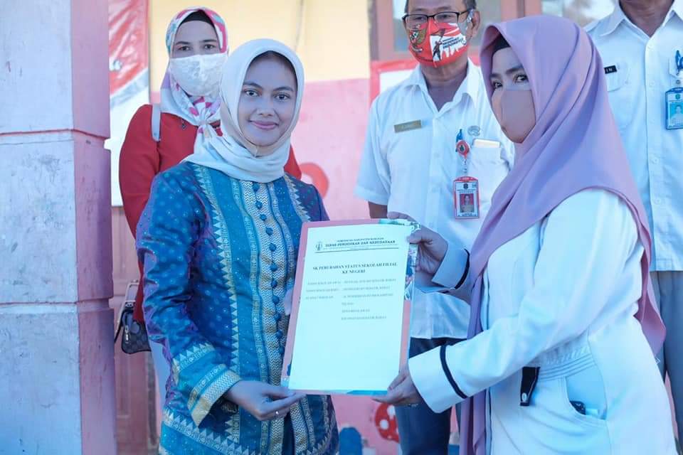 “Dengan meningkatnya status sekolah ini saya berharap kepada dinas pendidikan dan kebudayaan kiranya kualitas pelayanan pendidikan dan peningkatan pola pengelolaan sekolah menjadi lebih baik, segera lakukan langkah langkah taktis dan terukur sehingga perubahan status berbanding lurus dengan standar pelayanan pendidikan Sekolah Dasar Negeri.” kata Laura.