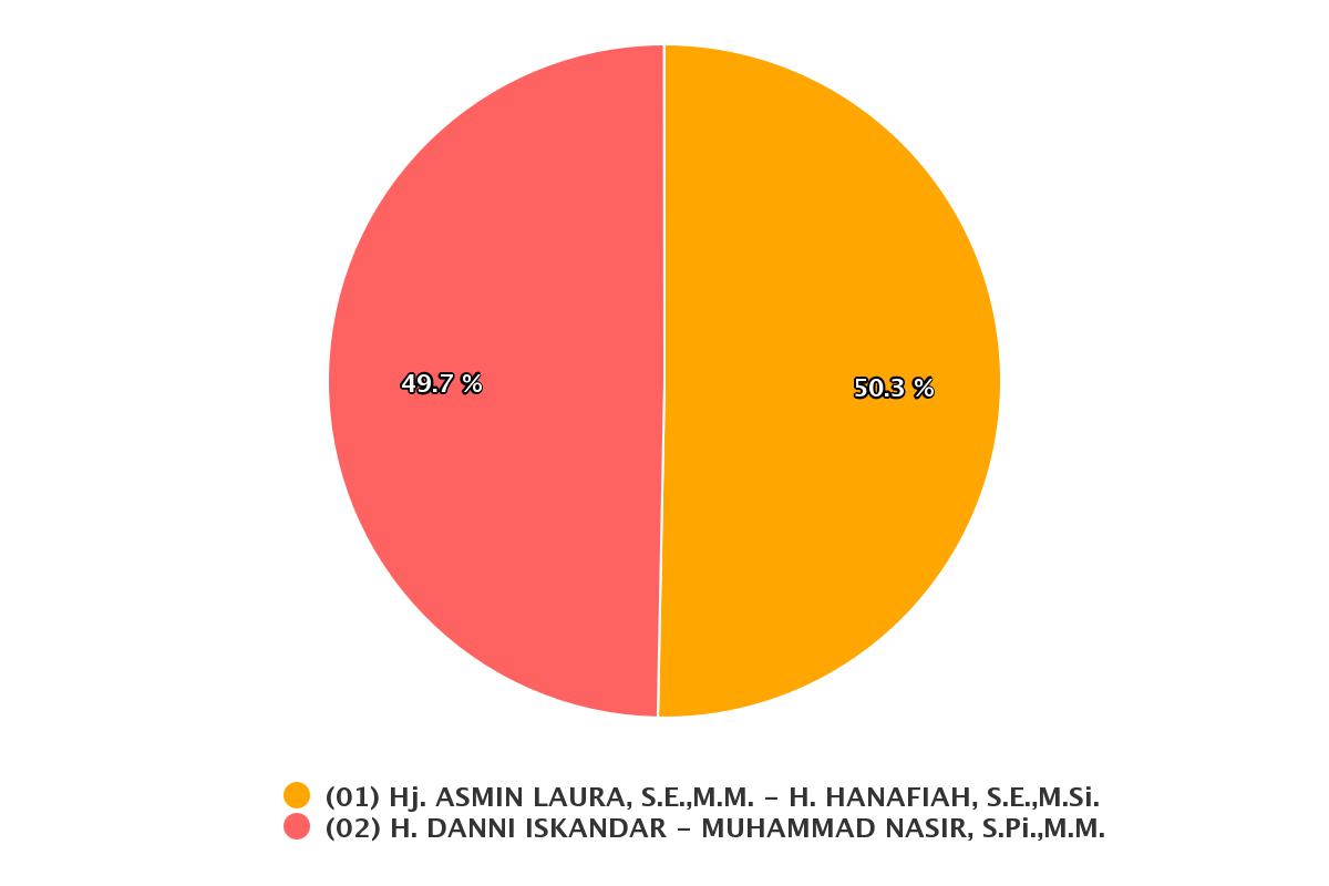 Dari data yang masuk sebanyak 53.23 persen atau sebanyak 288 TPS dari 541 TPS yang tersebar di seluruh Kabupaten Nunukan. Posisi terkini pukul 19.00, Minggu 13/12/2020. Paslon nomor urut 1 Hj. Asmin Laura-H.Hanafiah mengungguli paslon nomor urut dua H.Danni Iskandar-Muhammad Nasir. Dengan perolehan untuk Amanah 50.3 persen sementara Damai 49.7 persen. Namun masih ada data belum masuk seperti Krayan Selatan, Lumbis Ogong, Sembakung Atulai, Krayan Timur, Lumbis Pansiangan dan Lumbis Hulu.
