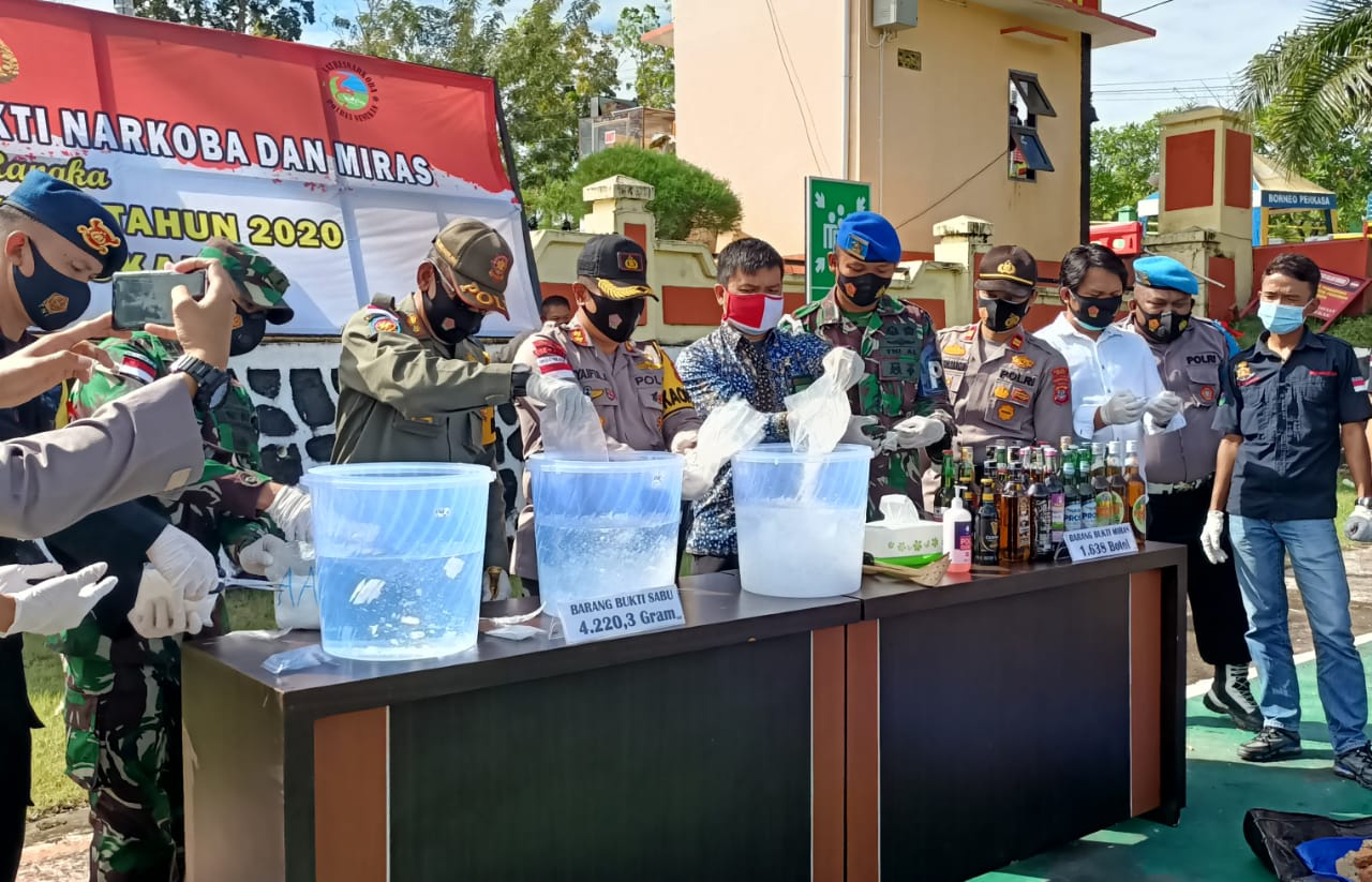 Polres Nunukan melakukan pemusnahan barang bukti narkotika golongan satu jenis sabu – sabu dan miras ( minuman keras ) dengan berbagai jenis, di Lapangan Tribrata Polres Nunukan Jalan Bharatu Aldi Kelurahan Nunukan Selatan Kabupaten Nunukan, sekira pukul 10.00 wita Kamis (31/12/2020).