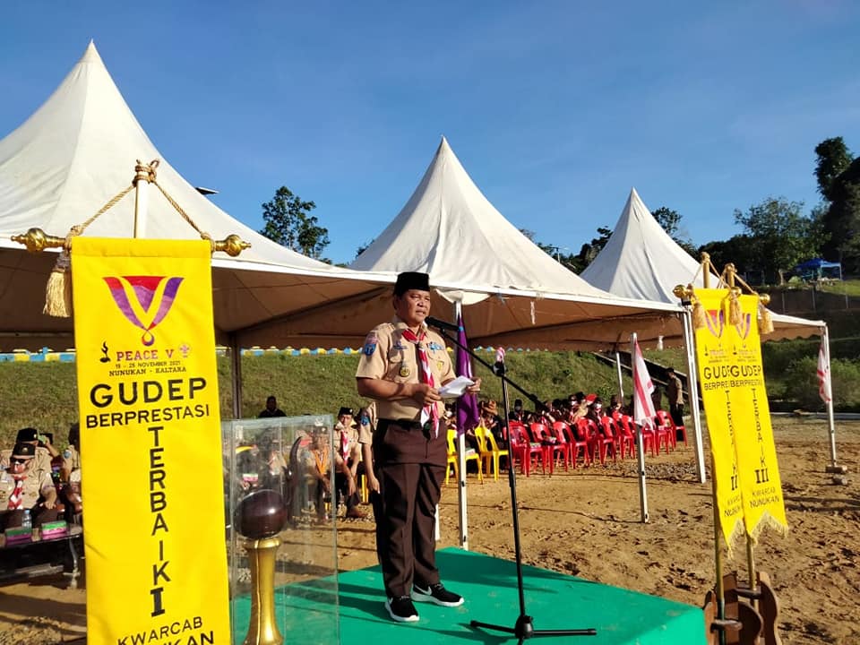 NUNUKAN – Wakil Bupati Nunukan H. Hanafiah sekaligus Ketua Kwarcab Gerakan Pramuka Nunukan menghadiri acara pembukaan Perkemahan Penegak Aksi Ceria (PEACE V) kwartir cabang gerakan pramuka Nunukan yang diselenggarakan di embung Sei Fatimah, Minggu (21/11).