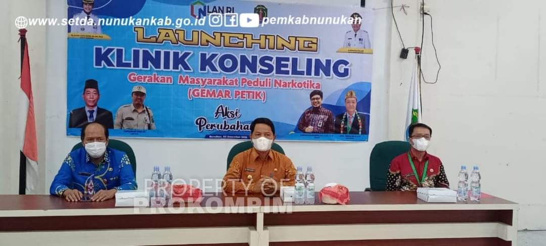 NUNUKAN – Wakil Bupati Nunukan H. Hanafiah, SE, M.Si meresmikan peluncuran Kinik Konseling Gerakan Masyarakat Peduli Narkotika. Acara tersebut dilaksanakan di gedung diklat BKPSDM Kab. Nunukan. Tampak hadir Asisten Pemerintahan dan Kesra Muhammad Amin, SH selaku mentor, Kepala BKPSDM Kab. Nunukan Kaharuddin, SS, Perwakilan Kepala Kesatuan Bangsa dan Politik Kab. Nunukan, Lurah Nunukan Tengah, BNN Kab. Nunukan, OPD terkait, reformer aksi Gemar Petik April Tibian, SE, M.AP, Tokoh Agama, Ketua Karang Taruna Persada, Babinsa, dan Babinkamtibmas, Jumat (03/12).
