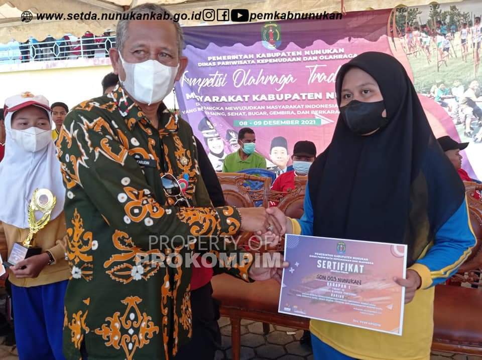 NUNUKAN – Kepala Dinas Pariwisata Kepemudaan dan Olahraga Drs Syafarudin mewakili Bupati Nunukan menutup Kompetisi Olahraga Tradisional gelaran Dinas Pariwisata Kepemudaan dan Olahraga Kab. Nunukan di Stadion Sungai Bilal, Kamis (09/12).