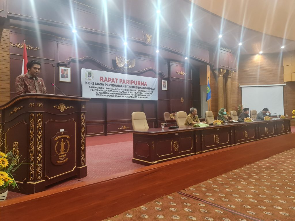 Persetujuan untuk membahas peraturan daerah yang dimaksud disampaikan melalui Rapat Paripurna Masa Sidang ke II Tahun Sidang 2022-2023 tentang Pemandangan Umum Fraksi fraksi DPRD Nunukan terhadap Nota Penjelasan Perubahan Perda Nomor 16 Tahun 2018 tentang Pemberdayaan Masyarakat Adat.