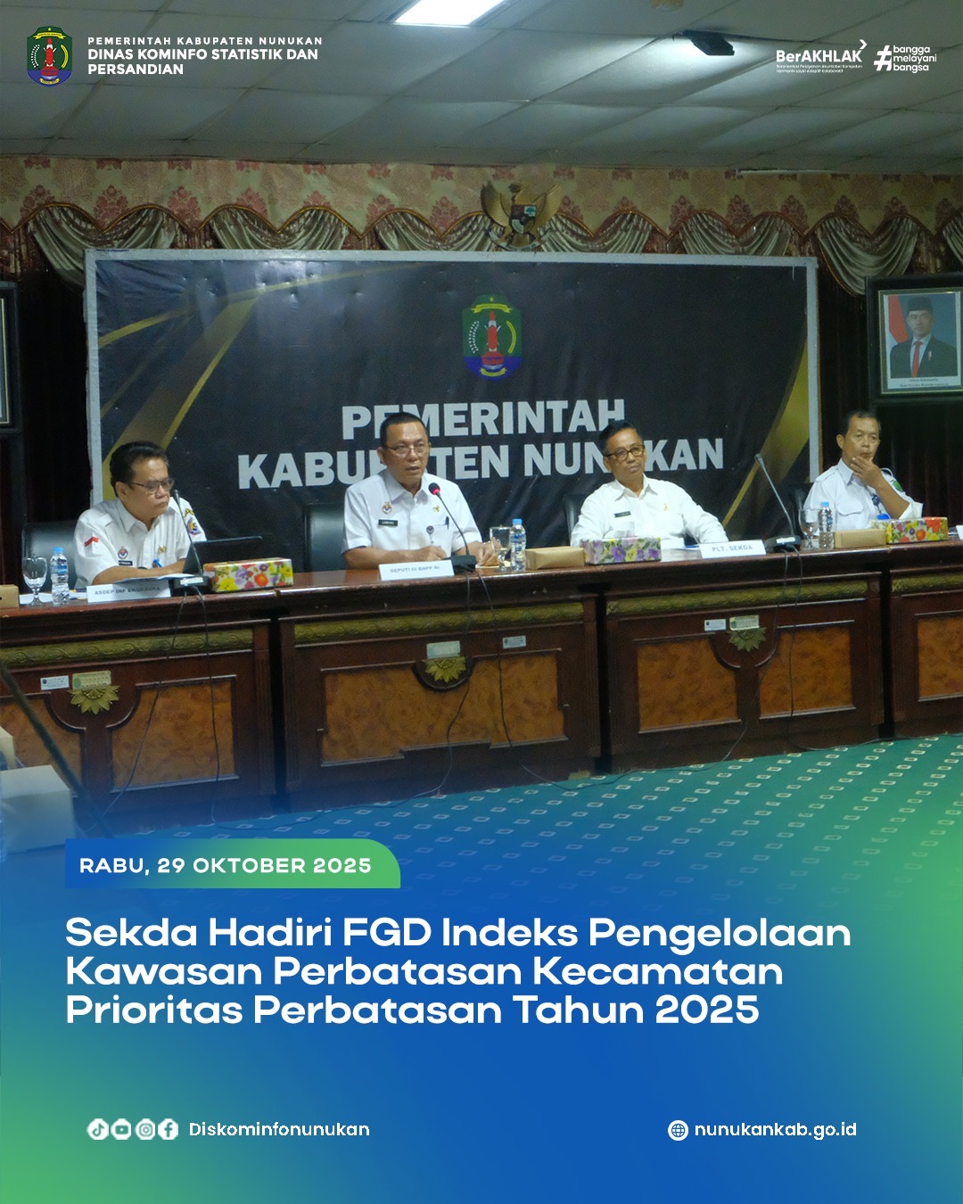 NUNUKAN – Badan Nasional Pengelola Perbatasan (BNPP RI) melalui Deputi Bidang Pengelolaan Infrastruktur Kawasan Perbatasan menggelar Focus Group Discussion dalam rangka penyusunan Indeks Pengelolaan Kawasan Perbatasan Kecamatan Perbatasan Prioritas (IPKP-KPP), Rabu (29/10/2025).