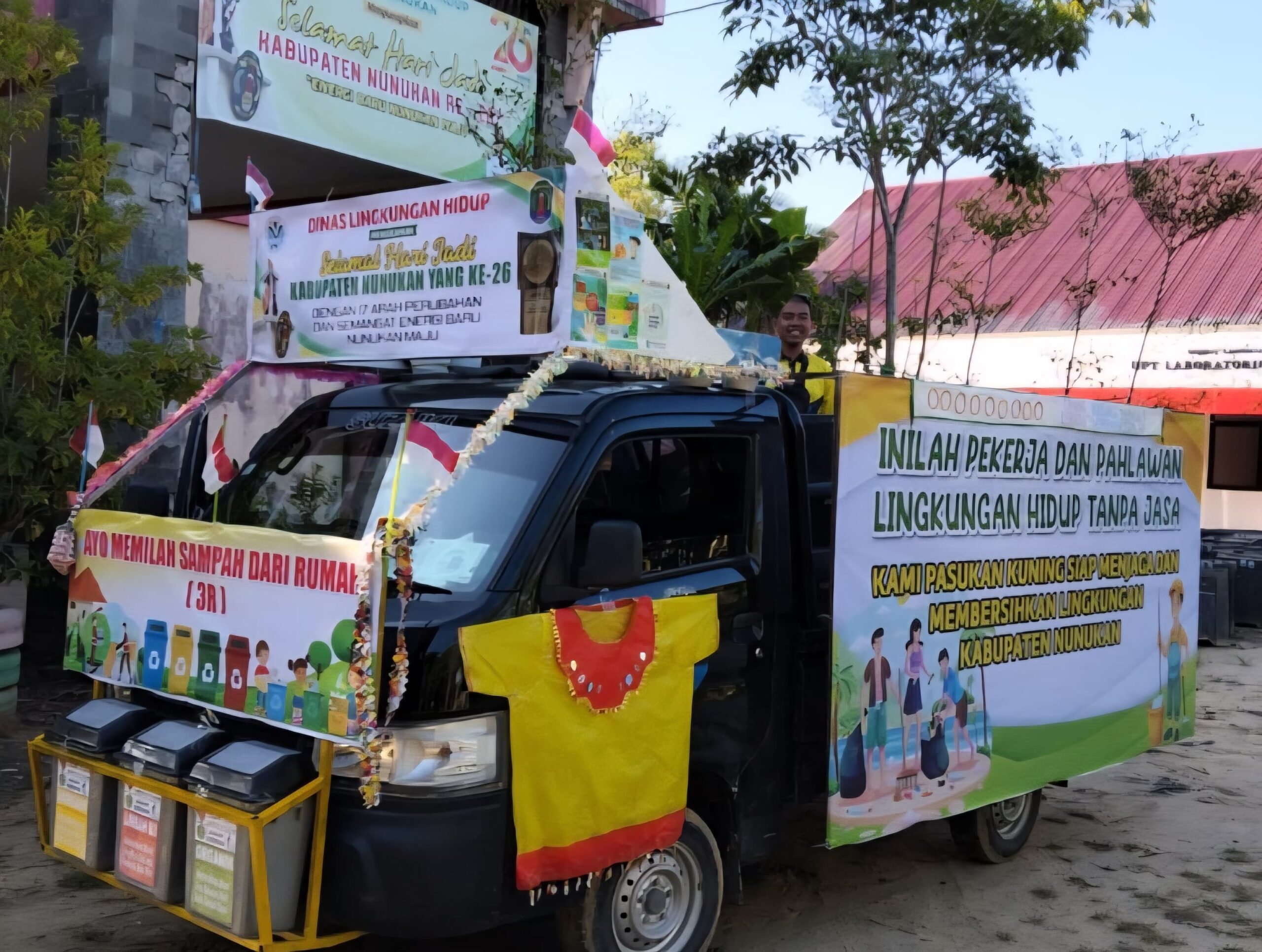 NUNUKAN — Dalam semarak perayaan Hari Ulang Tahun (HUT) Kabupaten Nunukan ke-26, Dinas Lingkungan Hidup (DLH) Kabupaten Nunukan turut ambil bagian dengan menampilkan mobil hias bertema peduli lingkungan.