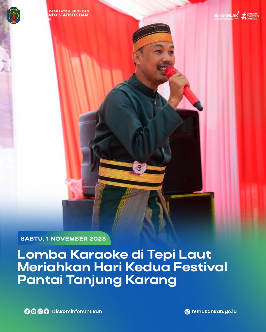 NUNUKAN – Memasuki hari kedua Festival Pantai Tanjung Karang dalam rangka peringatan HUT ke-29 Desa Tanjung Karang, berbagai perlombaan masih terus berlangsung. Salah satu yang paling menarik perhatian masyarakat adalah lomba karaoke yang digelar di ruang terbuka dengan latar pemandangan laut biru di Pantai Tanjung Karang, Kecamatan Sebatik.