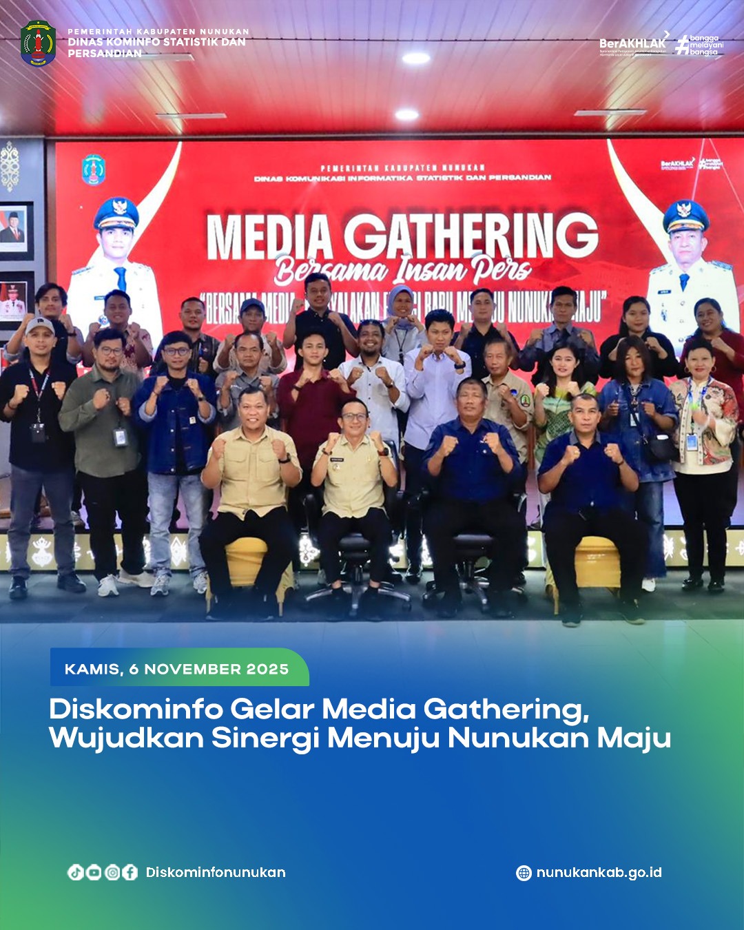 NUNUKAN – Dinas Komunikasi, Informatika, Statistik dan Persandian Kabupaten Nunukan menggelar kegiatan Media Gathering bersama insan pers dengan mengusung tema “Bersama Media, Menyalakan Energi Baru Menuju Nunukan Maju”. Kegiatan ini berlangsung di ruang rapat lantai 5 Kantor Bupati Nunukan, pada Kamis (6/11/2025).