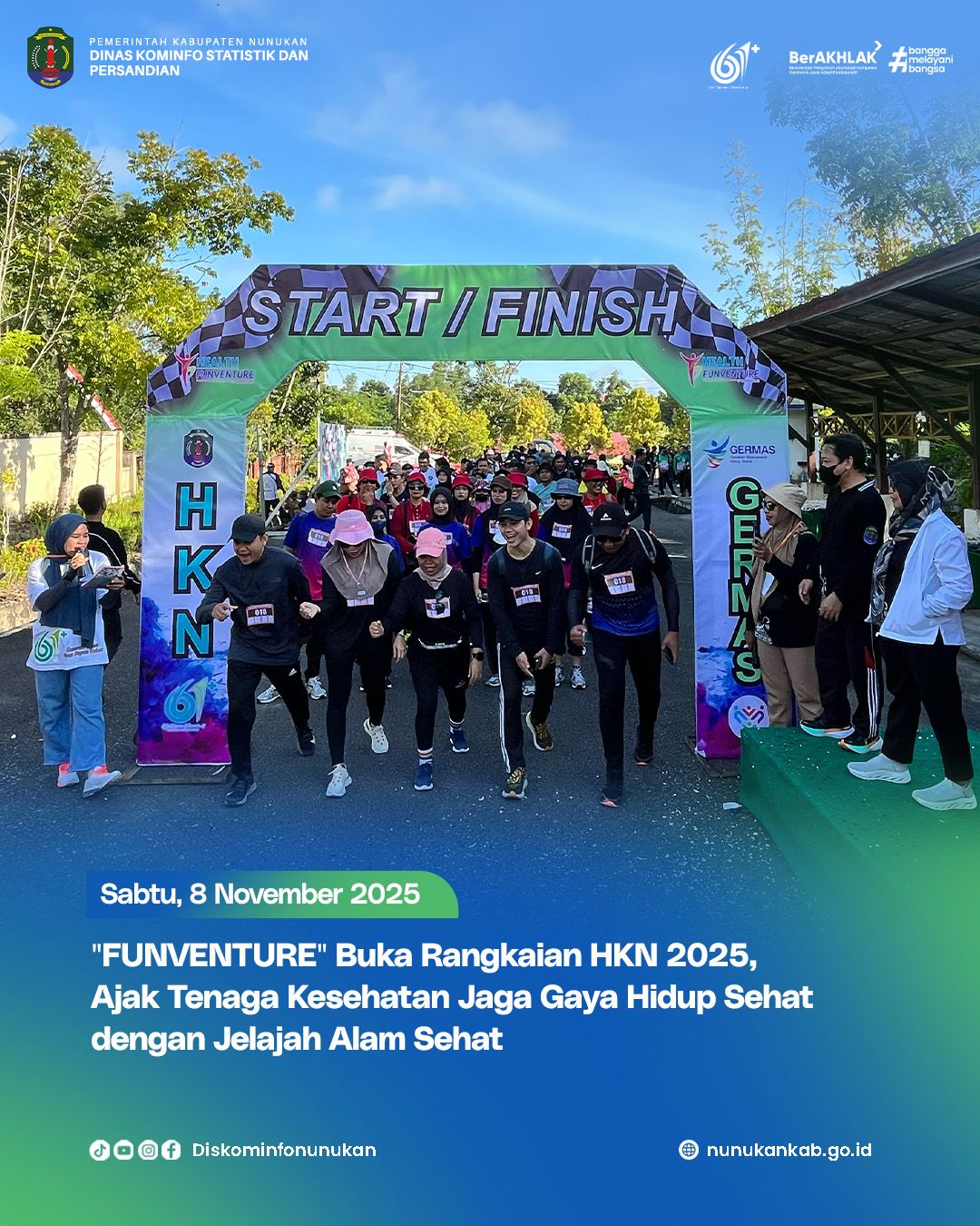 NUNUKAN – Dinas Kesehatan Kabupaten Nunukan memulai rangkaian Hari Kesehatan Nasional (HKN) ke-61 tahun 2025 dengan kegiatan Jelajah Alam FunVenture, Sabtu (8/11/2025). Kegiatan ini berlangsung sejak pukul 07.00 WITA dan diikuti oleh 51 tim yang terdiri dari 255 peserta yang berasal dari berbagai fasilitas pelayanan kesehatan di Kabupaten Nunukan.