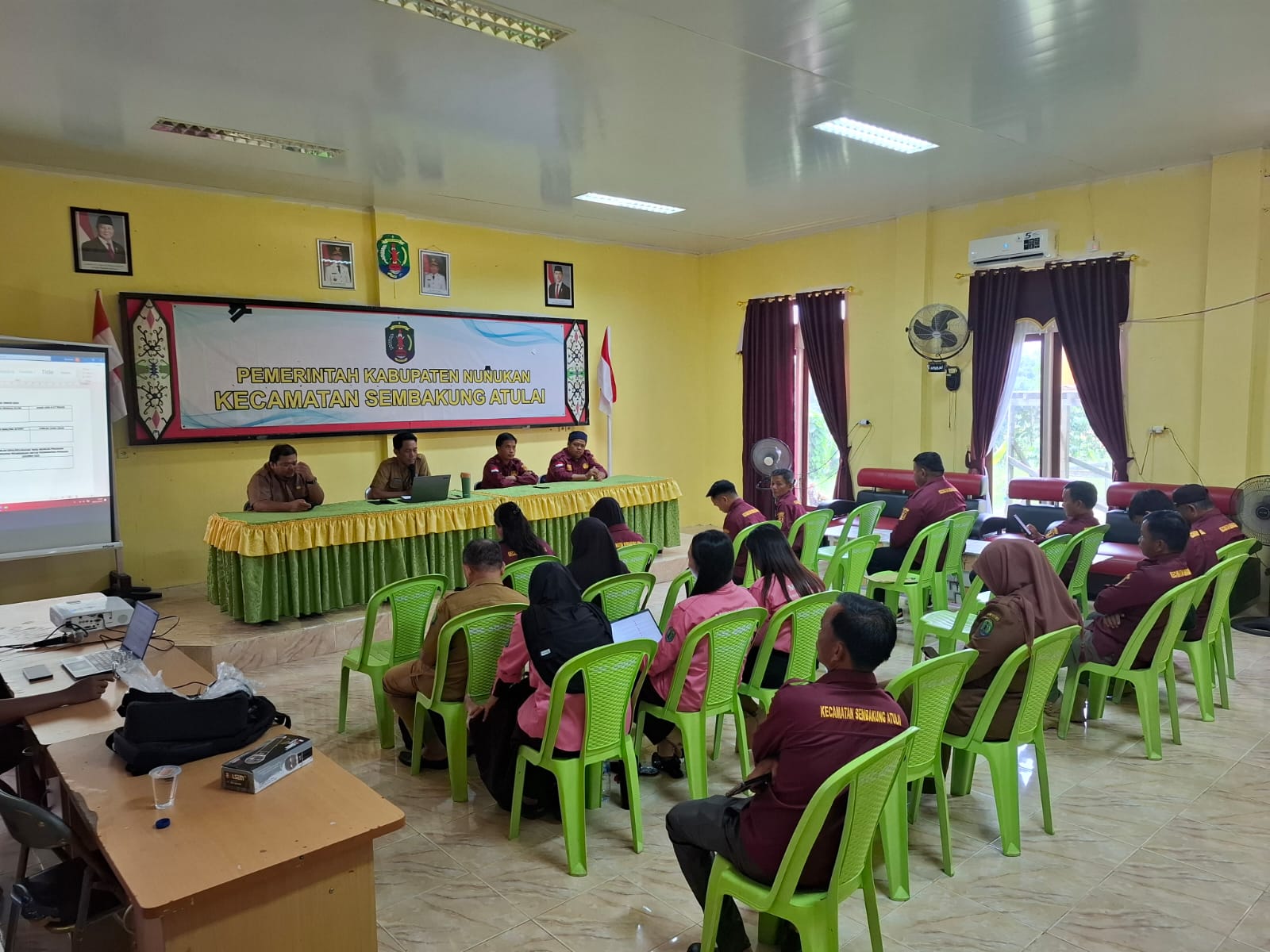 NUNUKAN – Pemerintah Kecamatan Sembakung Atulai melaksanakan Rapat Koordinasi tentang Pengimputan Data Penduduk Percepatan Penurunan Stunting Tingkat Kecamatan Tahun 2025, yang dirangkaikan dengan kegiatan penggunaan pengimputan data Aplikasi Bangda. Kegiatan ini berlangsung di Aula Kantor Camat Sembakung Atulai, dan diikuti oleh unsur Forkopimcam , Penyuluh Keluarga Berencana serta jajaran Puskesmas Sembakung Atulai, Selasa (04/11/2025).