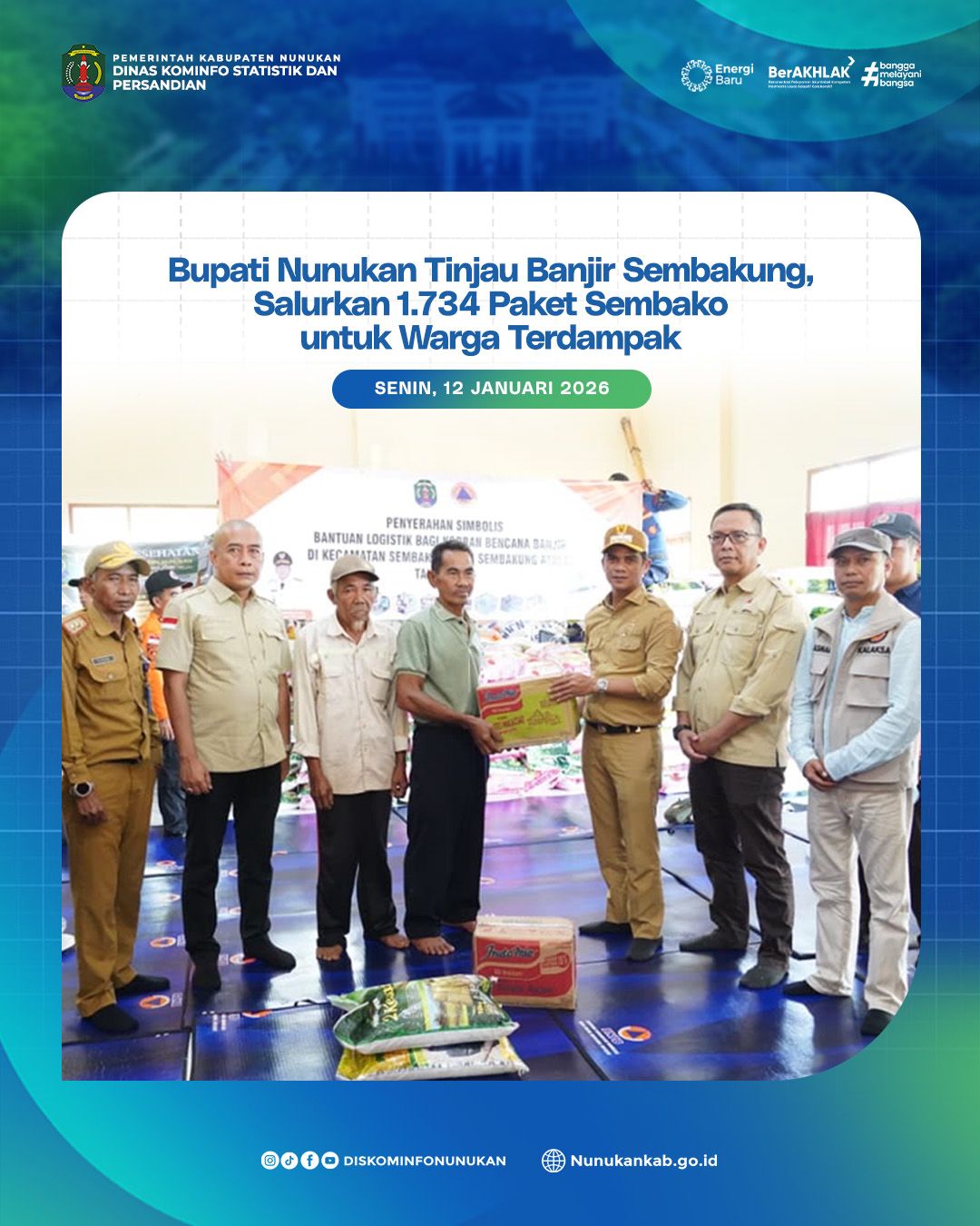 Pada kesempatan tersebut, Pemerintah Kabupaten Nunukan menyalurkan sebanyak 1.734 paket sembako bagi warga terdampak banjir di dua kecamatan tersebut. Bantuan itu diperuntukkan bagi 5.511 jiwa, disertai penegasan agar proses distribusi dilakukan secara adil dan tepat sasaran.