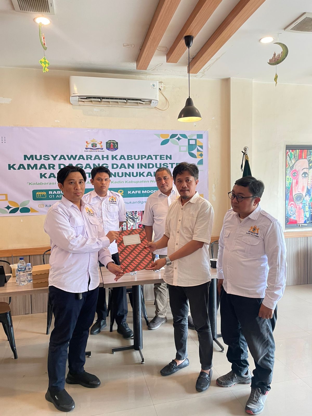 Di penghujung acara, Irsan Humokor secara simbolis menyerahkan berkas dokumen Kadin Nunukan kepada Ketua terpilih Sabri, S.Kom. Penyerahan tersebut turut disaksikan oleh pengurus Kadin Provinsi Kalimantan Utara sebagai bagian dari proses estafet kepemimpinan organisasi. (Adv)