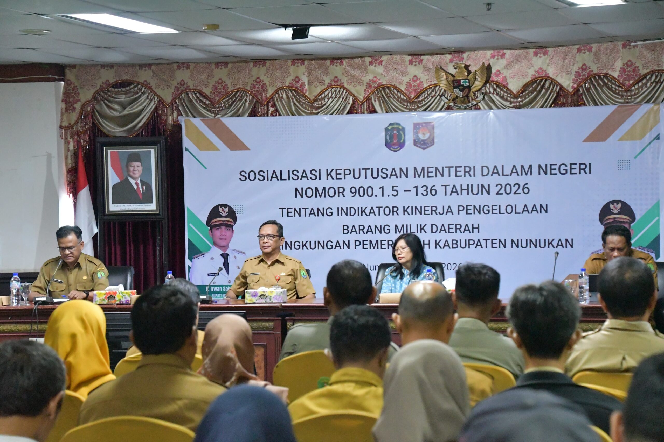 NUNUKAN – Mewakili Bupati Nunukan H. Irwan Sabri, Pj. Sekretaris Daerah Drs. Raden Iwan Kurniawan membuka secara resmi kegiatan Sosialisasi Keputusan Mendagri Indikator Kinerja Pengelolaan Barang Milik Daerah (BMD) bersama narasumber dari Dirjen Bina Administrasi Keuangan Daerah Kementerian dalam Negeri Republik Indonesia. Acara dilaksanakan di Ruang Rapat VIP lantai IV, Kantor Bupati Nunukan, Senin (13/04/2026).