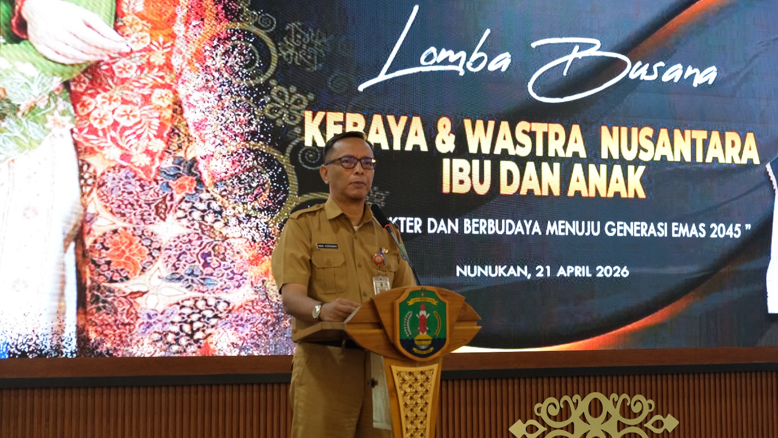 NUNUKAN – Pemerintah Kabupaten Nunukan melalui Penjabat Sekretaris Daerah, Drs. Raden Iwan Kurniawan, M.AP, secara resmi membuka Lomba Busana Kebaya dan Wastra Nusantara kategori ibu dan anak PAUD dalam rangka memperingati Hari Kartini ke-147 tahun 2026, Selasa (21/04/2026).